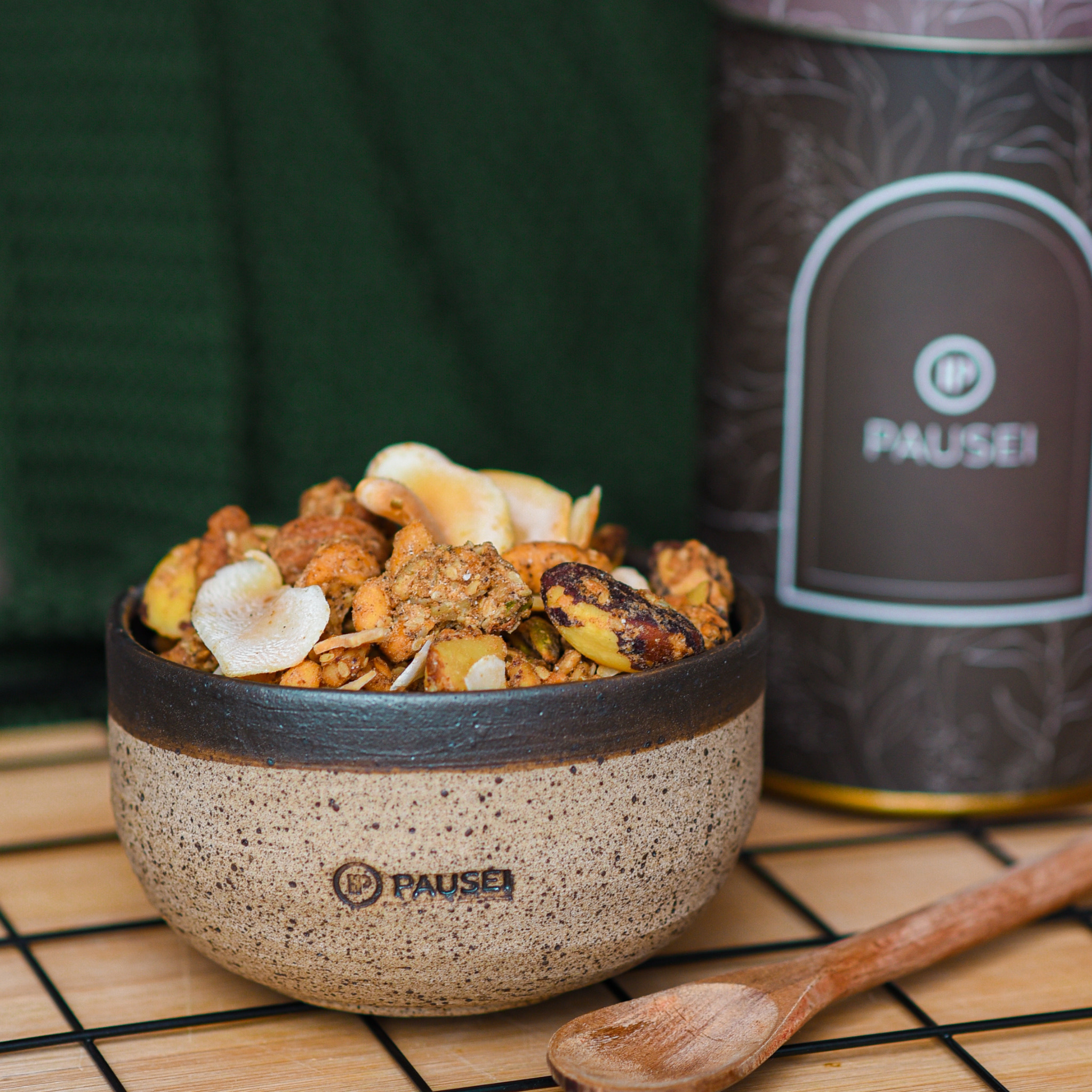 A Pausei é uma granola de nuts, zero açúcar, zero glúten, zero maltitol, sem grãos e low carb.