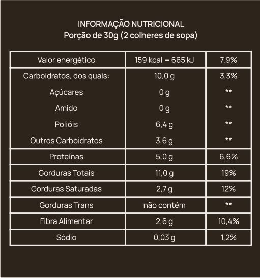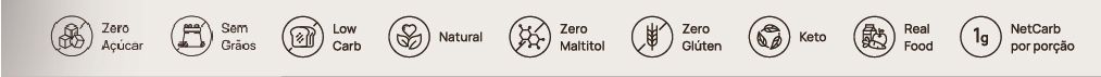 Possui também baixo glicêmico, pois cada ingrediente foi escolhido pensando em manter os